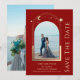 Mystical Dark Red Gold Sun Moon Stars Space Astronomía cósmica Save The Dates presenta un sol dorado, luna y estrellas enmarcadas en un fondo rojo oscuro. Adentro está tu foto favorita y tu personalizado guarda la información de la fecha. Añadir una foto adicional al reverso. Personalice editando el texto en los cuadros de texto. Diseñado para usted por ©2022 Evco Studio www.zazzle.com/store/evcostudio