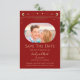 Mystical Dark Red Gold Sun Moon Stars Space Galaxy Celestial Save The Dates presenta un sol dorado, luna y estrellas enmarcadas en un fondo rojo oscuro. Adentro está tu foto favorita y tu personalizado guarda la información de la fecha. Personalice editando el texto en los cuadros de texto. Diseñado para usted por ©2022 Evco Studio www.zazzle.com/store/evcostudio