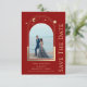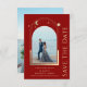 Mystical Dark Red Sun Moon Stars Space Astronomía Cosmic Celestial Save The Dates presenta un sol dorado, luna y estrellas enmarcadas en un fondo rojo oscuro. Adentro está tu foto favorita y tu personalizado guarda la información de la fecha. Añadir una foto adicional al reverso. Personalice editando el texto en los cuadros de texto. Diseñado para usted por ©2022 Evco Studio www.zazzle.com/store/evcostudio