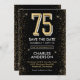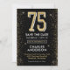 Esta fabulosa fiesta de cumpleaños número 75 de los hombres de oro y negro Salven la tarjeta de fecha con el número 75 en oro con fuentes modernas y lados purpurinas de oro sería perfecta para pedirle a la gente que ponga esta fecha especial a un lado para el hombre en la próxima fiesta de cumpleaños número 75 de su vida. Es tradicional y clásico, fresco, moderno y contemporáneo. Para ver su tarjeta única guardar las tarjetas de fecha seleccione "Personalizar esta plantilla" y escriba su información. ¡Es muy fácil!