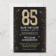 Esta fabulosa fiesta de cumpleaños número 85 de hombres de oro y negro Salven la tarjeta de fecha con el número 85 en oro con fuentes modernas y lados purpurinas de oro sería perfecta para pedirle a la gente que ponga esta fecha especial a un lado para el hombre en la próxima fiesta de cumpleaños número 85 de su vida. Es tradicional y clásico, fresco, moderno y contemporáneo. Para ver su tarjeta única guardar las tarjetas de fecha seleccione "Personalizar esta plantilla" y escriba su información. ¡Es muy fácil!