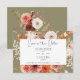 Esto permite guardar el diseño de la tarjeta de fecha con un ardor de naranja quemado, color melocotón y un marco floral crema con vegetación verde sabio alrededor de un arco blanco sobre un fondo verde sabio. Un monograma completa el aspecto sencillo pero elegante de esta invitación. Esta tarjeta es parte de la suite Boda Boho Burnt Naranja Fall Floral Arch Monogram de las tarjetas creadas por Simply Farmhouse Press.
