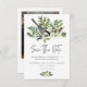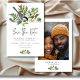 Celebra tu amor con la serena belleza del invierno. Nuestra boda inspirada en la naturaleza, salvo la tarjeta de fecha, cuenta con un delicado ramo acuático de pino rústico, pinos, mistletoe con bayas blancas, polvorientos cardos azules y un suave toque de helechos, que capta la tranquila magia de la temporada. Un bonito pájaro gris y blanco se extiende suavemente sobre los detalles de tu boda, añadiendo un encanto romántico y de bosque. Terminado con una fuente limpia y moderna, este diseño aporta elegancia y calidez a su día especial. Tu foto favorita de pareja adorna la parte de atrás. Ideal para una boda de invierno llena de maravilla natural. Creado por Simply Farmhouse Press.