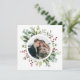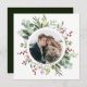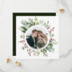 Estos Navidades | Vacaciones ahorran la fecha de la tarjeta plana con eucalipto de color de agua pintado, hojas verdes, bayas rojas, ramas de pino con una foto de círculo y texto personalizado en la parte posterior. Para una personalización más avanzada de este diseño, haga clic en el enlace "personalizar más adelante". También están disponibles los elementos coincidentes.
