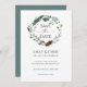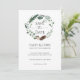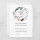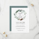 Bonito, boda elegante y moderna, salve las tarjetas planas de dátiles para tu ocasión especial! Perfecto para la alegre y alegre temporada de Navidades de invierno! La flor de hojas de color azul oscuro y verde claro bordea el eucalipto, el cono de pino marrón y las hojas de pino, y los marcos florales de magnolia blanca de la celebración de su boda " salven la fecha ". Sus nombres aparecen bajo la corona y en la tarjeta inversa para revelar un patrón de nieve verde sabio en la parte posterior. Personalizar los detalles de su boda, fecha, lugar y más en la parte delantera.
