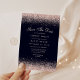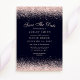 Anuncia tu boda con esta elegante tarjeta Save the Date que presenta un lujoso fondo navy y una cascada de confeti rosa dorado brillante. El diseño moderno y minimalista es perfecto para parejas que aprecian un toque de brillo y sofisticación. Personalízala con tus nombres y fecha de boda para crear un recuerdo único que tus invitados apreciarán.
