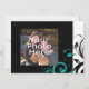 Atrevidas y llamativas invitaciones de boda negras contemporáneas modernas con acentos blancos y aqua teal turquesa, con un fondo festivo de hoja de voluta en remolino. Personalice en línea con los detalles de su boda.