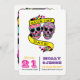 Colorida y brillante salva la tarjeta de fecha con dos cráneos con motivos de neón.