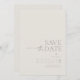 Esta suite boda de moda, con su paleta de colores cálidos y neutros y su diseño minimalista, tiene un aspecto atemporal y sofisticado que impresionará a sus huéspedes y ayudará a que su día especial sea inolvidable. Esta sorprendente tarjeta vertical "Save the Date", mostrada aquí en blanco óseo, tiene una plantilla para añadir fácilmente sus nombres, fecha de boda e información del sitio web. Busque ID1020 para ver todos los productos de este conjunto de bodas.