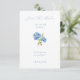 Esta hermosa y tan moda y mínima tarjeta boda "Save The Date" muestra un floral diseño de hidrangea azul, elegante texto de guión azul polvoriento, fecha y dirección del evento, junto con un conjunto contemporáneo de fuentes. La espalda sigue siendo blanca. Juvenil y de moda, esta carta marca un tono alegre. Utilice 'Editar herramienta' para cambiar el color del fondo o del texto según sus preferencias.
