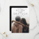 Una boda simple y moderna salva el diseño de la fecha con una foto vertical de sangría completa, con tus nombres en la parte superior con letras modernas, junto con un guión florecido "y". Personalice la fecha y la ubicación de su boda y agregue detalles adicionales a la parte posterior, como el sitio web de su boda. Debido a la colocación del texto y los elementos de diseño, este estilo se recomienda para las fotos verticales con amplio espacio blanco o luminoso en la parte superior.