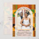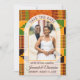 Esta elegante foto de arco moderno para boda SAVE THE DATE—con tela Kente ghanesa africana en el fondo—está diseñada para anunciar su día especial de boda cultural.