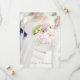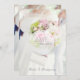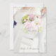 Diseño de boda adorable y editable con una hermosa pareja de novios, sosteniendo un ramo de flores frescas en el fondo.