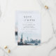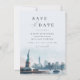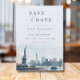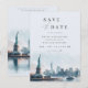 Celebra tu amor contra el telón de fondo icónico de la ciudad de Nueva York. Este elegante save the date presenta una impresionante ilustración de acuarela de Lady Liberty y la silueta de la ciudad de Nueva York. La tipografía hermosa y el diseño minimalista crean una apariencia sofisticada y atemporal. Perfecto para una boda de destino o una celebración inspirada en NYC. Personaliza el save the date con la fecha de tu boda, nombres y un mensaje personalizado.
