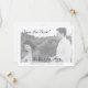 Design front features the photo you supply displayed in black and white against a white background. The semi-transparent effect helps to create the appearance of fine elegance. All text is featured in an elegant black Nuptial font. (If the photo used is in color, it will come out in color. To use this design with a color photo that you wish to appear in black and white, please see the "Nuptial Grace B&W Wedding Flat Save-the-Date" also in this collection.) Photo is bordered with a flourish.
