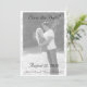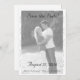 Design front features the photo you supply displayed in black and white against a white background. The semi-transparent effect helps to create the appearance of fine elegance. Heading, date, names and city are all displayed in an elegant black Nuptial font. Photo is bordered with a flourish.