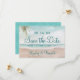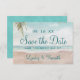 La brisa de la isla pintó la escena de la playa, con olas oceánicas, arena y palmeras, con un hermoso cielo azul verde azulado. Con Fuentes Modernas De Escritura De Tipografía. Una playa tropical de verano, o diseño de bodas de destino - Boda personalizada ¡Salven las tarjetas de fecha! ~ Revisa mi tienda para ver toda la suite boda para este diseño!