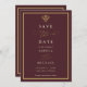 Set on a deep burgundy background with subtle gold accents and elegant serif typography, this save the date card offers a calm, sophisticated way to share your wedding date with guests while setting the tone for a luxurious celebration.