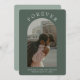 Elegantes y modernas tarjetas de invitación de compromiso con tu foto favorita de compromiso en forma de arco. La tipografía moderna y los tonos verdes hacen de esta tarjeta de compromiso algo especial. Personalizar el texto para que se ajuste a sus necesidades. Esta tarjeta también se puede usar como una tarjeta Save the Date.