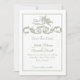 This elegant Save the Date card features a refined olive sage green Toile de Jouy–inspired design with delicate floral garlands and a graceful flying cherub motif. Inspired by antique French art and traditional Parisian stationery, the soft green palette conveys natural elegance, timeless romance, and European sophistication.