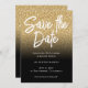 Superposición de arte digital con brillo falso dorado sobre negro para la información de "Save the Date" de su boda.
