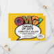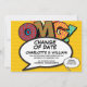 Personaliza con tus nombres y detalles para anunciar el cambio de fecha de tu evento especial. Diseño moderno y divertido con temática de arte pop de cómics, perfecto para bodas, fiestas de compromiso, baby showers, bautizos, fiestas de aniversario, celebraciones de aniversario, graduaciones, fiestas de cumpleaños y otros eventos especiales durante todo el año. Un diseño genial, moderno y divertido que pone el ¡Zas! y el ¡Pum! en tu día. Diseñado por ComicBookPop© en www.zazzle.com/comicbookpop*