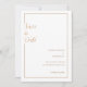Tarjeta de anuncio de "Save The Date" personalizable con plantilla imprimible personalizada para anunciar el matrimonio de la pareja o la ceremonia de compromiso. Tarjeta de color marfil blanco básico con una fuente de escritura dorada clásica y limpia en la parte superior. Mínimo. Moderno. Hay un delicado marco dorado con las palabras "Save The Date" escritas en el lado izquierdo y los nombres de la novia y el novio escritos en letras mayúsculas, fecha y el resto de la información escrita en el lado derecho. Puede personalizar toda la información y editar el tipo, estilo y tamaño de fuente con la herramienta de diseño. Papelería de boda. Her Line For Design Studio de Ayesha.