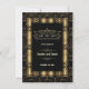 Diseño Glamuroso y Romántico Art Déco al estilo de Gran Gatsby. Cuenta con estilo Art Déco, forma angular de lámina de oro falso, adornos y divisor, fuentes vintage hermosas, sobre un fondo negro Art Déco. Utilice la herramienta Personalizar para agregar su información. Para artículos coincidentes, visite mi Colección de Estilo de Arte Angular.