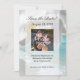 Un diseño refrescante y con clase presenta una escena de la orilla del océano de color azul turquesa con olas blancas rompiendo en la costa. Agua azul clara y fresca y arena blanca con cielo azul y nubes blancas esponjosas. En el primer plano hay una bella orquídea blanca en primer plano de alta calidad. Esta imagen zen serena y tranquila es perfecta para una boda en la playa, o para un evento especial o ocasión de negocios con tema de viaje de vacaciones a un resort de spa. Relájese mientras recibe un masaje, manicura de spa o pedicura en el salón. Disfrute de la relajación y la tranquilidad junto a la playa y las orillas del océano. Todos los Diseños Copyright © 2012 www.CustomInvitesOnline.com