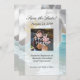 El diseño es fresco y elegante y cuenta con una verde azulada escena marina azul acuático con olas blancas que se estrellan en la costa. Agua azul claro y clara, arena blanca y azul cielo con nubes de color blanco. En primer plano se encuentra una hermosa flor de orquídeas blancas que se acercan a la más alta calidad. Esta tranquila y serena imagen zen es perfecta para una boda en la playa, o para vacaciones en un balneario, vacaciones con temática de viajes especiales o ocasión de negocios. Relájese mientras recibe un masaje, una manicura en el spa o una pedicura en el salón. Podrá disfrutar de relajación y tranquilidad junto a la playa y la orilla del océano. Todos los diseños Copyright © 2012 www.CustomInvitesOnline.com Este diseño está disponible como una colección completa!