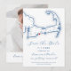 Fije el tono para su boda de Osterville con este moderno azul marino Save the Date que incluye un elegante mapa de Cape Cod en la parte delantera y una foto de personalizable en la parte trasera. Perfecto para bodas en Oyster Harbors Club, The Wianno Club o Armstrong-Kelley Park, este diseño combina el estilo con la comodidad y ofrece un direccionamiento gratuito de los sobres. ¡Anuncie su día especial en un incansable encanto costero! Obra de arte de Diseños de Mapa Costero.