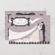 Tarjetas planas de boda elegantes de color rosa oscuro y negro para guardar la fecha con una hermosa ilustración vectorial de novia y novio románticos y adorables palomas blancas que llevan corazones de amor sobre un fondo de diseño de rosas ornamentadas de color rosa oscuro. En el reverso de las invitaciones hay dos hermosas palomas blancas y una plantilla de texto para que puedas personalizar con los detalles de tu evento. Invitaciones modernas con clase, tendencia y elegancia vintage glamorosa. Perfecto para un evento de primavera, verano, otoño o invierno. Tengo productos coincidentes en mi tienda. POR FAVOR TENGA EN CUENTA - TODAS LAS INVITACIONES EN ZAZZLE TIENEN IMÁGENES IMPRESAS PLANAS. Si necesita ayuda para personalizar su producto, por favor contácteme a través de mi tienda. Estaré encantado de ayudar.