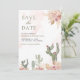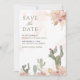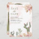 Sorprenda a sus huéspedes con esta elegante boda Save the Date, que incluye hermosas flores rosas y cactus con tipografía moderna. Simplemente agregue los detalles de su evento en esta plantilla fácil de usar y adorne esta tarjeta con su foto favorita para convertirla en una invitación única.