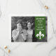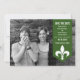 Moda moderna y elegante Flourish Banner Photo Save the Date Announement con un cartel de flecha de color verde oscuro adornado con un simple adorno de flores de lis. Esta elegante invitación para guardar la fecha es perfecta para anunciar su próximo boda. Fácil de personalizar, simplemente agrega tu propia foto y detalles del boda. Haga clic en "Personalizar" para buscar opciones de personalización adicionales.