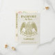 Estas divertidas bodas, salvo las tarjetas de cita, están diseñadas para tener la sensación de tener un pasaporte estadounidense. El frente es una textura de cuero blanco y una huella dorada que incluye un águila estadounidense. La parte de atrás se parece a la parte interior del pasaporte con una foto y timbres adorables que indican el destino de su boda. Excelente manera de que sus amigos y familiares sepan que la fecha está abierta para viajar a su boda.