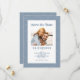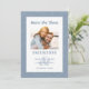 Agrega tu foto personalizada a nuestra tarjeta de boda de "save the date" con estilo que presenta un patrón de hojas abstractas modernas sobre un fondo azul polvoriento de moda. La caligrafía en negrita y el guion están en azul polvoriento sobre un fondo blanco. Una plantilla de moda complementa el diseño único de caligrafía. Una plantilla moderna para la fecha y el año complementa el diseño único de caligrafía y los nombres de pila de la pareja se muestran sobre un ampersand coordinado. La parte trasera de la tarjeta repite el patrón de hojas sobre un fondo azul. ¡Personaliza con tu foto de compromiso favorita para anunciar tu gran día! (Para la mejor colocación de tu imagen, usa una herramienta de edición de fotos para centrar y recortar ANTES de subirla al sitio web de Zazzle). Asegúrate de ver el enlace de la colección en esta página para ver todos los artículos coincidentes.