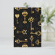 Patrón incomparable de llaves antiguas, doradas y de silueta sobre fondo negro.