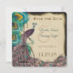 Pavo real funky sentado en una caprichosa jaula de pájaros y plumas de pavo real Falso Pergamino Quemado funky y lindo Save the Date. Pavo real Jaula de pájaros Bodas - Programas, Menús, Tarjetas de inserción y más coincidentes