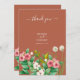 Una hermosa flor de acuarela y diseño boda Periwinkle. Un diseño único que utiliza flores botánicas de época rústica. Un elegante diseño naranja de terracota retro floral con un toque de vegetación. Una flor silvestre y el boda Periwinkle gracias por el diseño de tarjetas con elementos modernos. También hay disponibles invitaciones de boda coincidentes y otros artículos de papelería.