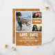 Una boda a medida ahorra la fecha con diseño de bloques de fotos con imagen de madera cortada