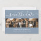 La foto boda azul polvoriento personalizada guarda las tarjetas de fecha con 4 imágenes y un tipo de letra de escritura moderno. Personalice fácilmente esta elegante boda fotográfica, guarde la fecha con sus imágenes y detalles de boda. Elementos coincidentes disponibles.
