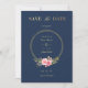 Custom Photo Navy Elegant Pink Garland Wreath Wedding Save the Date.