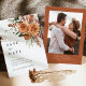 Warm terracotta tones paired with romantic rose florals create an elegant boho save the date card designed for modern yet timeless celebrations.