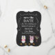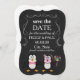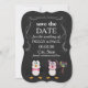 Un lindo salva la invitación a la cita. Este diseño presenta pingüinos personalizados preparándose para el día de su boda.