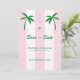 Reserva La Fecha Pink Cabana Stripes Palm Tree Monogram Wedding
