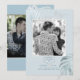 PixDezines follaje tropical azul polvoriento, palmas y monstera guarda nuestra fecha. Adornado con moderno texto de caligrafía guarda la fecha en platino. Color de fondo DIY en azul nórdico. Los diseños dinámicos de PixDezines te permiten editar cualquier elemento en esta plantilla de invitación.