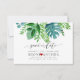 PixDezines con un elegante guión de broche, un verde vegetación tropical ahorra el color de fondo de la fecha DIY y un corazón rojo. Los diseños dinámicos de PixDezines permiten editar cualquier elemento de esta plantilla de invitación. Copyright © 2018 PixDezines.com™ y PixDezines™ en zazzle.com. Todos Los Derechos Reservados.