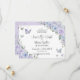 Personalice esta hermosa y delicada quinceañera de color morado y polvoriento azul / dulce 16 cumpleaños, salve la fecha fácil y rápidamente. Simplemente haga clic en el botón personalizar para editar los textos, cambiar las fuentes y los colores de las fuentes. Presenta una suave lila púrpura pastel y rosas azul polvoriento, mariposas y elementos plateados de moda. Elementos coincidentes disponibles en el almacén. c) Somerset Fine Paperie
