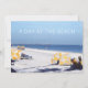 Personalice esta fiesta de playa retro única, con sombrillas amarillas y un hermoso océano azul.