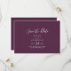 Esta plancha de coordenadas morado morado hueco horizontal ahorra la tarjeta de fecha es perfecta para un boda moderno. El elegante diseño de estilo boho joyel presenta un sólido color morado de berenjena oscura con un toque bohemio moderno. Coordina con la Colección Moody Purple Blooms de Fresh & Yummy Paperie.